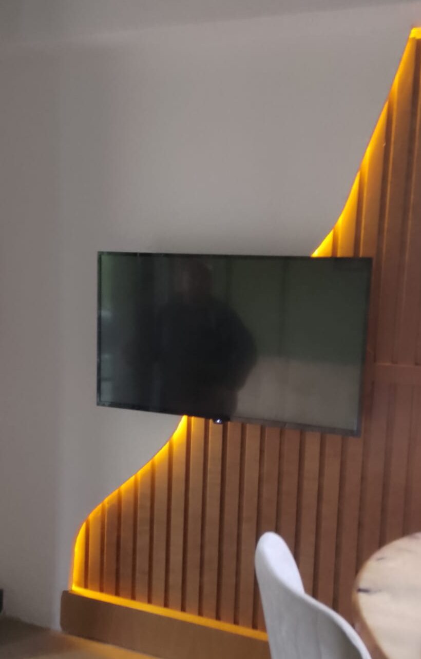 • Son Aşama: Tasarımın tamamlanması ve detayların vurgulanmasıyla birlikte duvarın son hali. LED ışıklar aktif hale getirilmiş ve mekanın genel görünümü tamamlanmış.