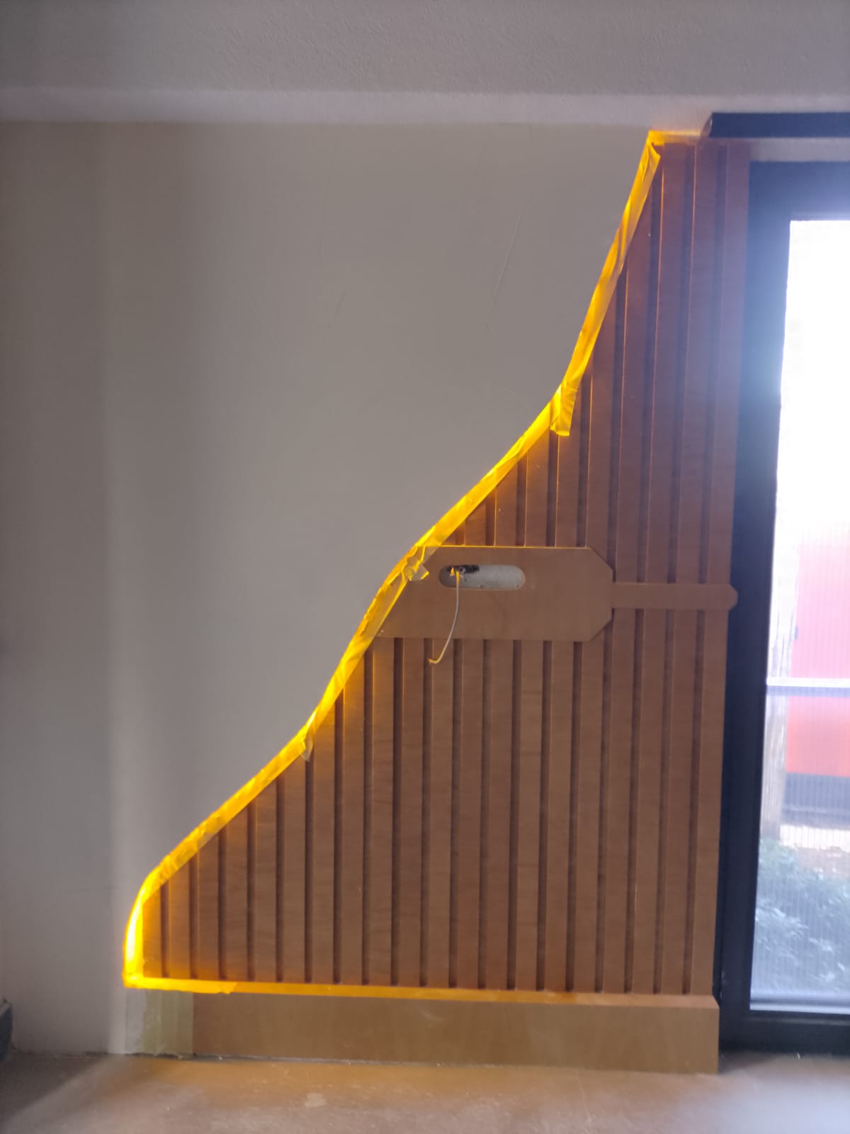 • Işıklandırma Yerleşimi: LED şeritlerin yerleştirilmesi ve duvarın eğimli yapısına uygun bir şekilde ışığın yayılmasını sağlamak, projenin en dikkat çekici özelliklerinden biri.